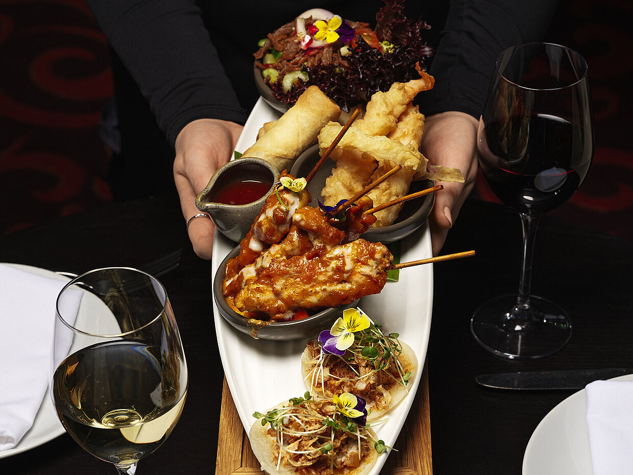 A Chaophraya classic, our sharing starter platter offers a vibrant selection of much-loved Thai dishes.
