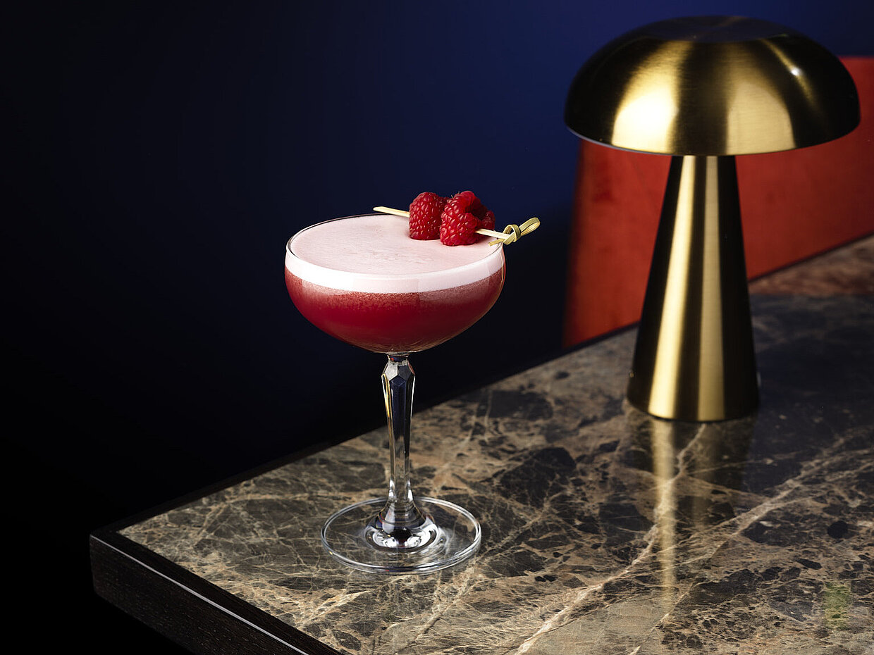 A smooth, blushing cocktail that drifts between sweet and sharp. Cîroc Red Berry vodka flows with delicate lychee, tart cranberry and fresh lemon, finished with a silky foam and a dusting of raspberry like river-mist at sunset.